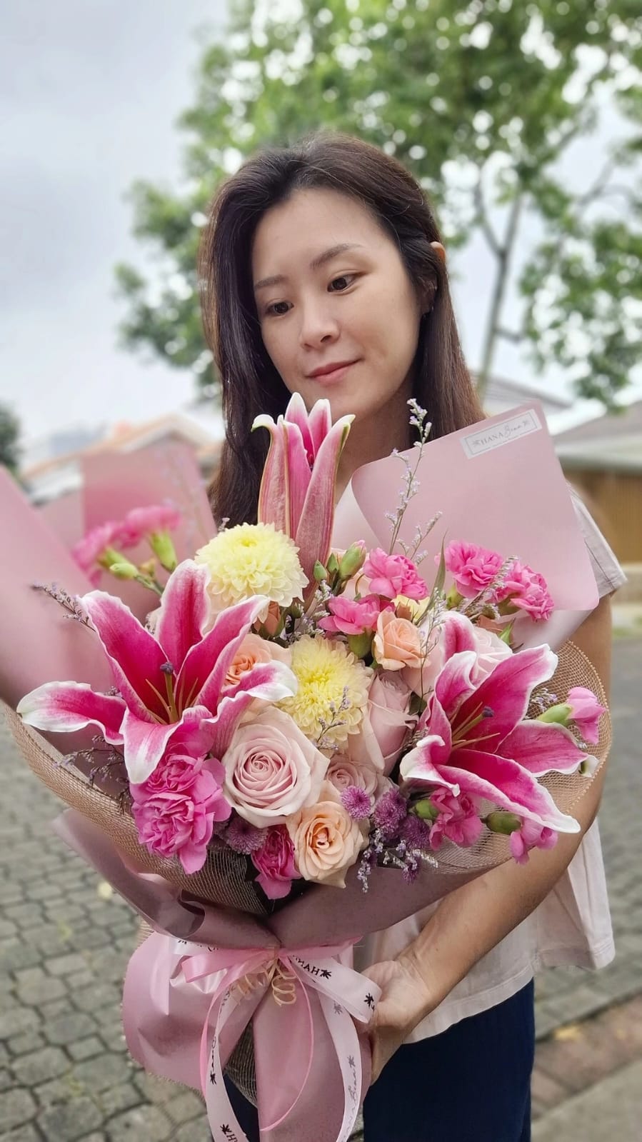 HanaBena Florist was established in 2022, when Bena Hanawati began learning about flower arranging from a friend who is a florist. From that moment, flowers captured her heart. She dedicated herself to learning various arrangement techniques from different florists. Through countless trials and errors, she perfected her craft, and her very first order came from a neighbor in her community.